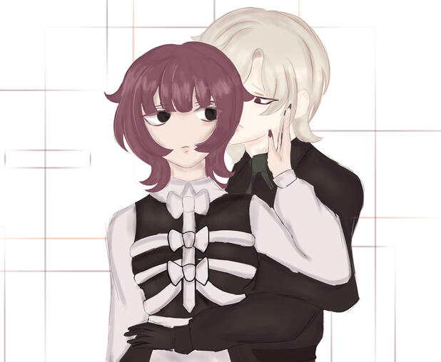 Vividrew is the ship between Andrew and Vivian. They meet inside the Manor, where Vivian feels compelled to talk to Andrew because she believes he's exactly "like her". Her definition of "being friends" is following him around the halls and sitting next to him in silence, which of course, makes Andrew wary.Vivian isn't the best in conversation and neither is Andrew. So at first, Vivian just remarks obvious stuff about the enviroment ("It's dark", "everyone is scared"). Andrew is unable to find any kind of malice in her voice, so he quickly gets frustrated by her presence. Her quirks make him on edge, and the fact that he doesn't seem to be able to get rid of her is worse.The truth is, Vivian felt Andrew's loneliness mirrors her own. His paranoia, his fear, are things she also feels whenever she's under everyone's scrutinizing gaze.Vivian seems inoffensive, not attacking or insulting Andrew, so he finally lowers his guard ever so slightly. This allows them to get closer, relieved to not be met with rejection and gossip.
